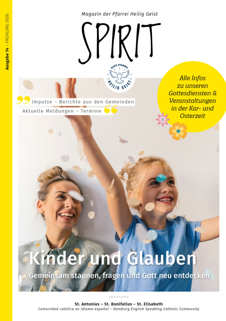 Das aktuelle Magazin hat den Schwerpunkt „Kinder und Glauben“. Wie können wir Kinder mit dem Glauben in Berührung bringen? Wie muss Familienpastoral heute gestaltet werden? Dazu erzählen wir von unterschiedlichen Aktivitäten in unserer Pfarrei. Auch unsere Kitas und Schulen stellen sich vor. Darüber hinaus gibt es Berichte aus unseren Gemeinden und natürlich informieren wir Sie über alle Termine in der Kar- und Osterzeit und weitere Veranstaltungen im Frühjahr. Wir wünschen Ihnen viel Freude beim Lesen!