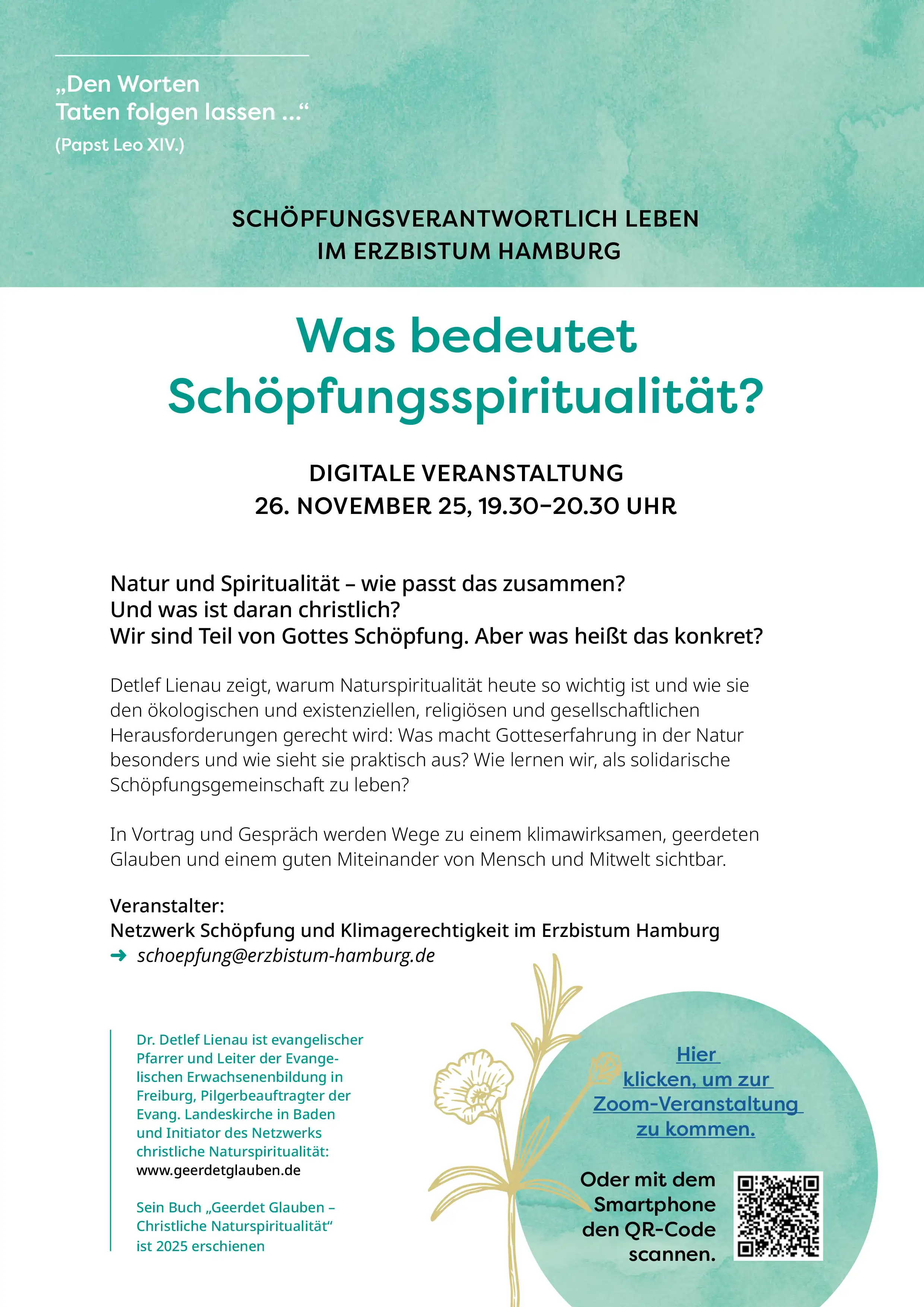Was bedeutet Schöpfungsspiritualität? DIGITALE VERANSTALTUNG 26. NOVEMBER 25, 19.30–20.30 UHR